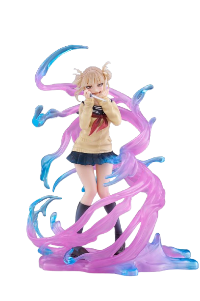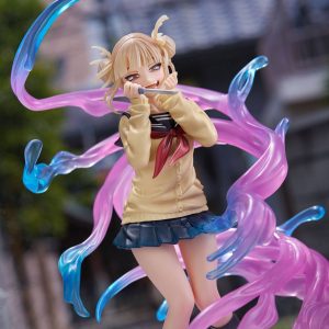 The base is designed to reflect her Quirk, featuring an effect that represents the transformation process, beautifully depicted with her clothing beginning to dissolve at the skirt area. This dynamic design not only highlights Toga’s unique abilities but also adds an eye-catching element to the figure. Add this exceptional piece to your collection and bring the charm of Himiko Toga to life!